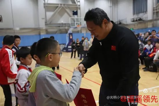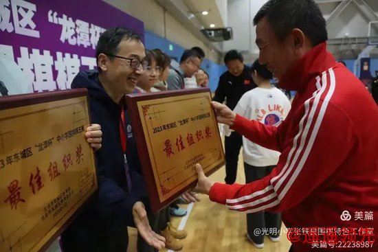 东城区教委体育卫生科丁涛科长为光明小学颁发最佳组织奖。