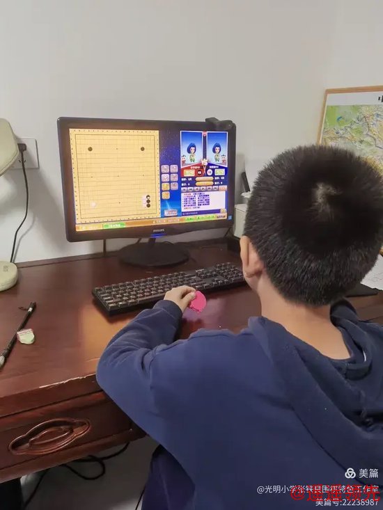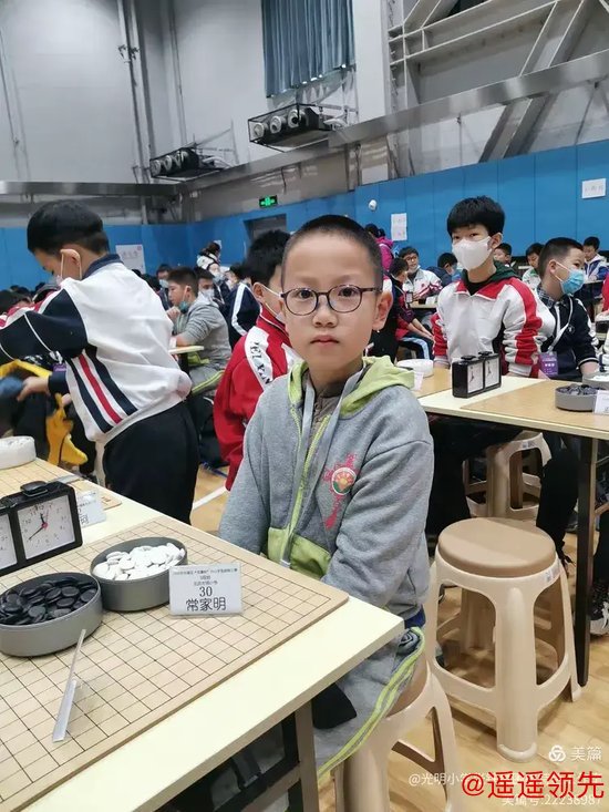 我们光明小学的小棋手常家明代表学校参加了2段组的比赛,经过顽强拼搏,最后拿下了所在组“小棋王”的称号。”
