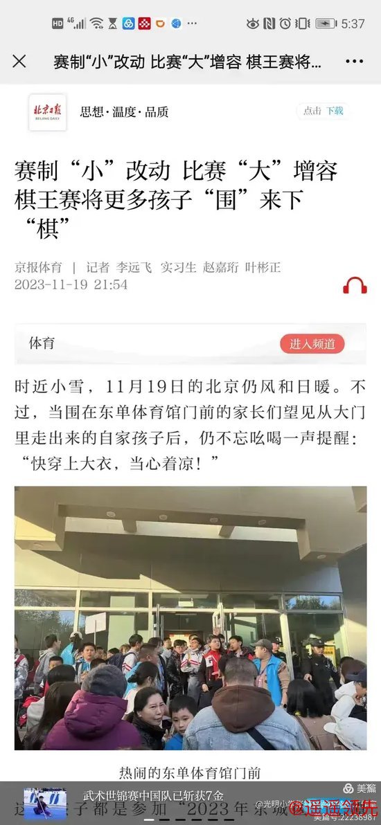 《围棋报》报道北京光明小学参与“龙潭杯”东城区中小学棋王赛。