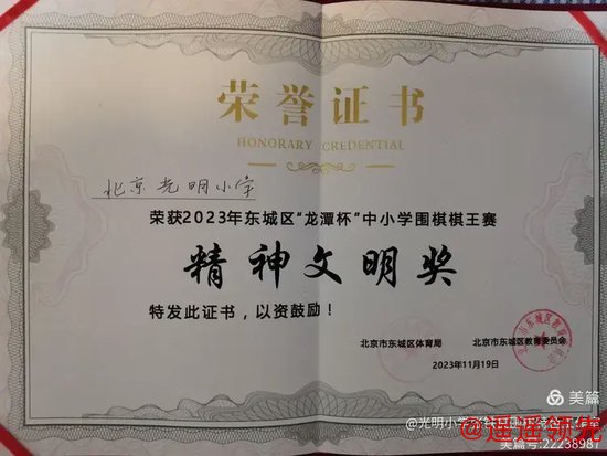 北京光明小学围棋棋手在东城区“龙潭杯”中小学围棋棋王赛中收获满满