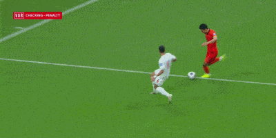 国足开场后占据主动,依靠着谢文能和王钰栋的边路进攻给巴林施加压力。第9分钟,王钰栋左路突破到底线后回扣,巴林后卫伸手将王钰栋推倒,但主裁判拒绝判罚点球,死球后和VAR简单沟通后做出了维持原判的决定。