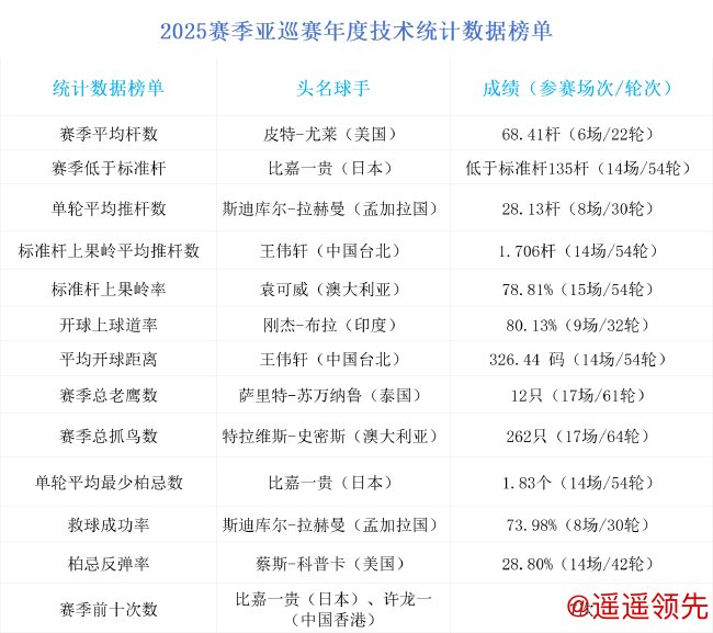北京时间12月27日消息,2025赛季收官,亚巡赛年终技术统计数据正式出炉万博体育,榜单前列几乎被本赛季表现最为亮眼的球手们包揽。